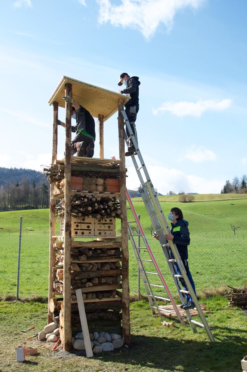 Dank der tatkräftigen Unterstützung einer Schulklasse von der sozialpädagogischen Schule formidabel Malters können wir einen tollen Beitrag zur Biodiversität leisten. Sie planen und bauen auf ihrem Schulareal einen Lebensturm. Unterstützt werden sie bei diesem spannenden umweltpädagogischen Projekt vom Archehof Neuhof, Hildisrieden.